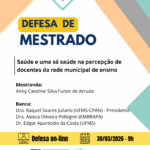 O Programa de Pós-Graduação em Estudos Fronteiriços convida para a Defesa Pública de Dissertação da mestranda: Anny Caroline Silva Funes de Arruda, a ser realizada no dia 30 de março de 2026, às 09:00, virtualmente, sob o título: “Saúde e uma só saúde na percepção de docentes da rede municipal de ensino“, contando com os […]