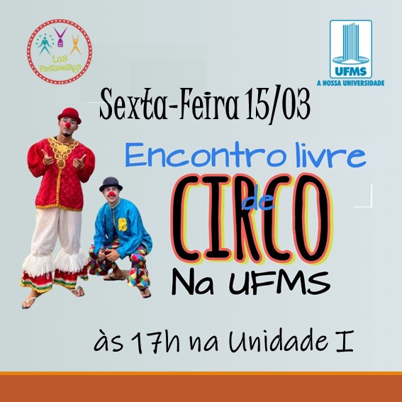 Se você já fez circo algum dia e não tem tempo para praticar. Se você tem curiosidade em conhecer. Se você tem vontade de experimentar. Vem para UFMS!!!! Vem para o CPAN!!! Sexta-Feira, dia 15 de março, às 17h, no Laboratório de Cultura Lúdica, Circo, Educação Física e Esporte. Maiores Informações: Instagram @lospantaneirosoficial.
