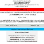 O Curso de Pós-Graduação em Estudos Fronteiriços convida para a Defesa Pública de Dissertação do mestrando Marcelo Rodrigues Ribeiro dos Santos, a ser realizado no dia 23 de Setembro de 2025, às 08:00, virtualmente, sob o título: “SER CRIANÇA NA FRONTEIRA BRASIL – BÓLIVIA: INFLUÊNCIAS FAMILIARES NO JOGO E NA BRINCADEIRA” contando com os examinadores: […]