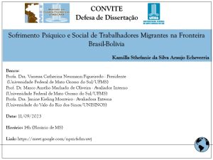 Título: Sofrimento psíquico e social de trabalhadores migrantes na fronteira Brasil-Bolívia