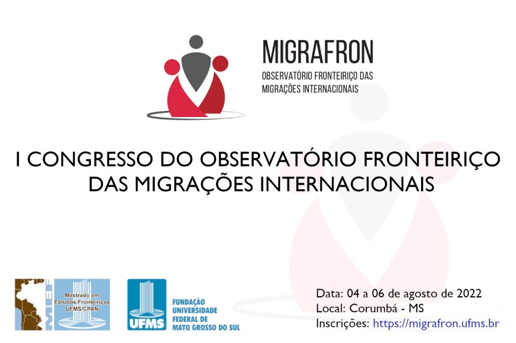 De 04 a 06 de agosto de 2022 Corumbá, MS, estará sediando o I Congresso do Migrafron – Observatório Fronteiriço das Migrações Internacionais. Organizado pelo Mestrado em Estudos fronteiriços, da Universidade Federal de Mato Grosso do Sul, o evento é organizado em parceria com pesquisadores da Universidade Federal da Grande Dourados e da Universidade Estadual de Mato Grosso do Sul, e contará com a participação de pesquisadores de diversas universidades brasileiras e do exterior que trabalham com a temática fronteiriça, em especial, nos circuitos espaciais e territoriais de fronteira.