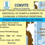 O Curso de Pós-Graduação em Estudos Fronteiriços convida para a Defesa Pública de Dissertação da mestranda Jéssica Campos de Freitas que acontecerá no dia 26 de Maio de 2025 (Segunda-feira), virtualmente. Título: “ A SUBJETIVAÇÃO FEMINISTA NO TESTEMUNHO INDIVIDUAL DE DOMITILA BARRIOS DE CHUNGARA A PERMEAR FRONTEIRAS” Local: Virtualmente. Horário: 14:00 Data: 26/05/2025   Banca […]